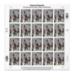 In the aftermath of September 11th, the U.S. Postal Service produced a semi-postal stamp which raised money for families affected by the terrorist attacks. It celebrated the heroism of America’s first responders and the resiliency of the nation by featuring the iconic image of three firefighters raising the American flag amid the rubble of the World Trade Center. This intact sheet of 20 stamps is a wonderful way to remember the heroes of 9/11.