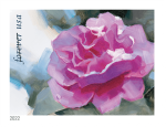 Snowy Beauty celebrates the unexpected beauty of flowers in snow. Ten stamp designs, painted in oils on panel, feature ten different plants: camellia, crocus, hellebore, winterberry, pansy, plum blossom, grape hyacinth, daffodil, ranunculus, and winter aconite, which is also on the cover of this booklet of 20 stamps.