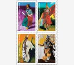 Four new stamps in a pane of 20 showcase original paintings of four Native American powwow dancers by Cochiti Pueblo artist Mateo Romero. The dances featured are Crow Hop, Women’s Traditional, Women’s Fancy Shawl, and Men’s Hoop.