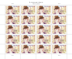 The 34th stamp in the Literary Arts series honors novelist Saul Bellow (1915–2005). Winner of three National Book Awards, a Pulitzer Prize, and the Nobel Prize, Bellow is widely regarded as one of the greatest authors of the 20th century. The stamp art is a pen and ink and watercolor portrait of Bellow based on photographs from 1982. In the background is a street scene in Chicago, where he lived most of his life. Art director Ethel Kessler designed the stamp with original art by Joe Ciardiello.